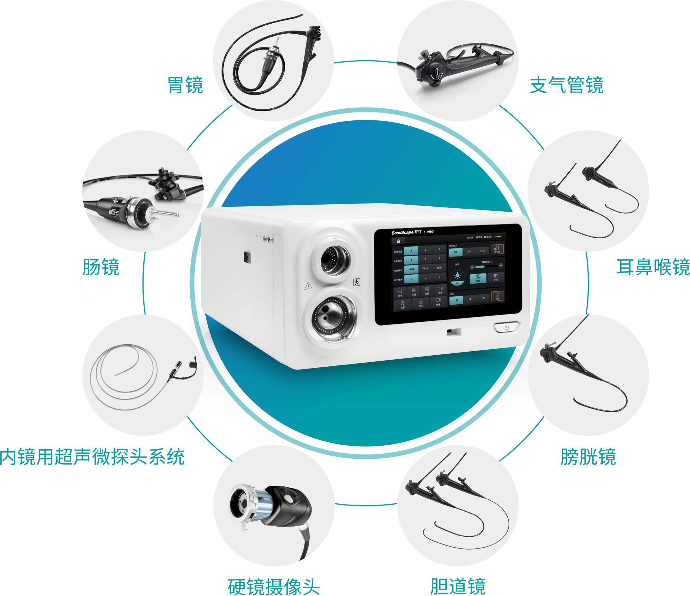 X-2600系列产品为消化呼吸内镜以及硬镜、外科软镜均支持使用的兼容性平台。医生能够根据手术需要快速切换内镜产品,更好地满足临床需求。